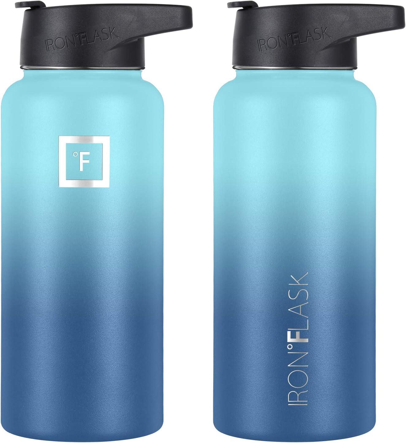 IRON °FLASK Camping & Hiking Hydration Flask with Straw, Wide Mouth Insulated Stainless Steel Sports Water Bottle – 32 oz Cotton Candy(Blue Waves)