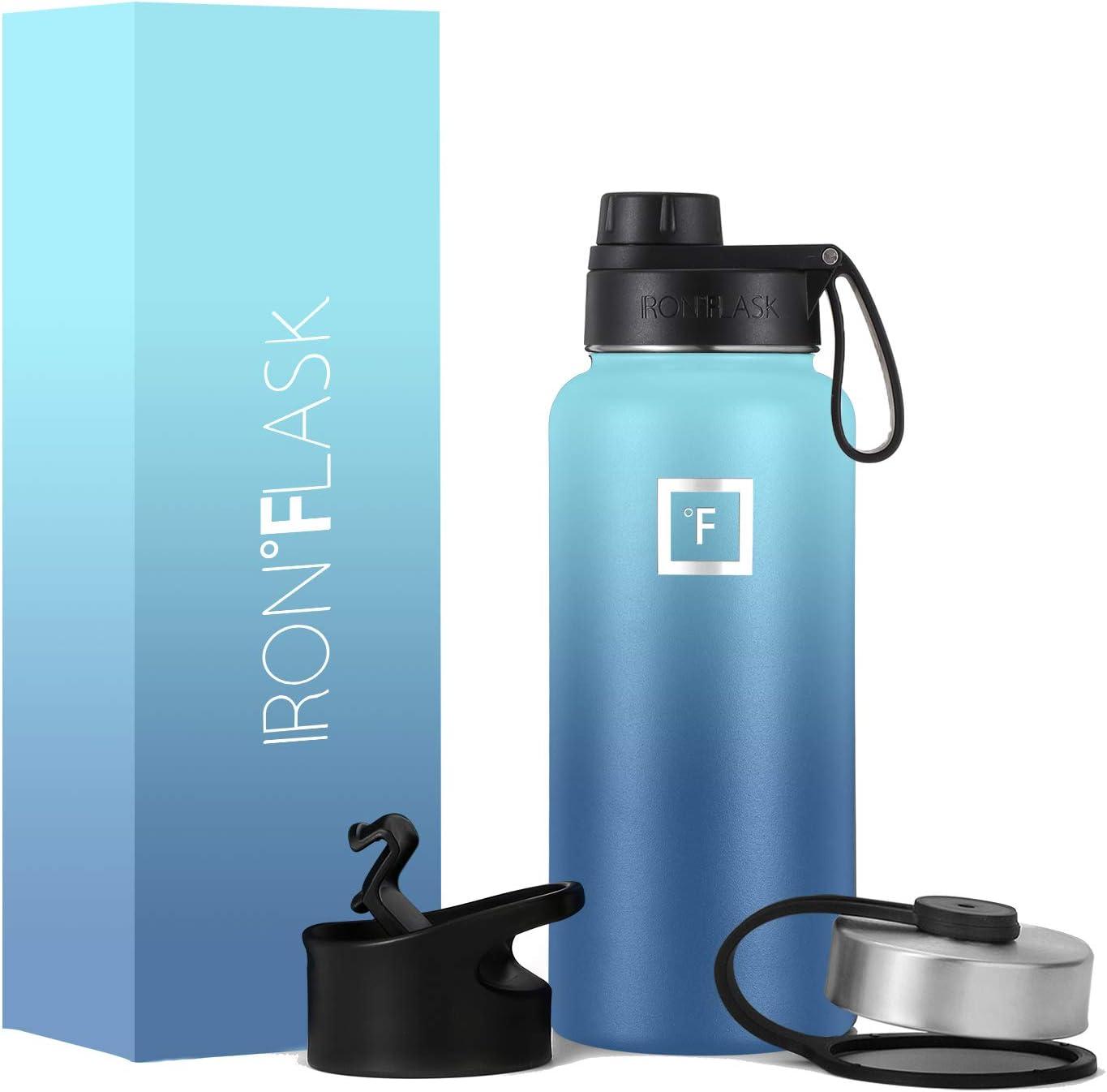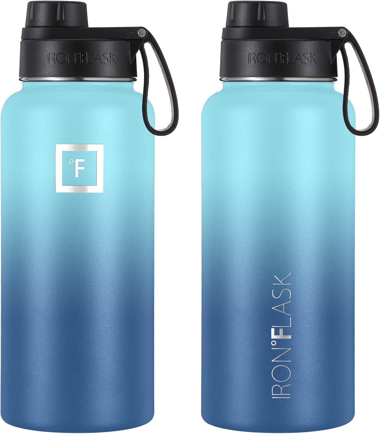 IRON °FLASK Camping & Hiking Hydration Flask with Spout, Wide Mouth Insulated Stainless Steel Sports Water Bottle – Midnight Black 32 oz – Spout (1 Lid)(Twilight Blue)