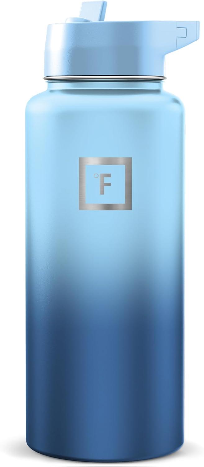 IRON °FLASK Camping & Hiking Hydration Flask with Straw, Wide Mouth Insulated Stainless Steel Sports Water Bottle – 32 oz Cotton Candy(Cobalt)