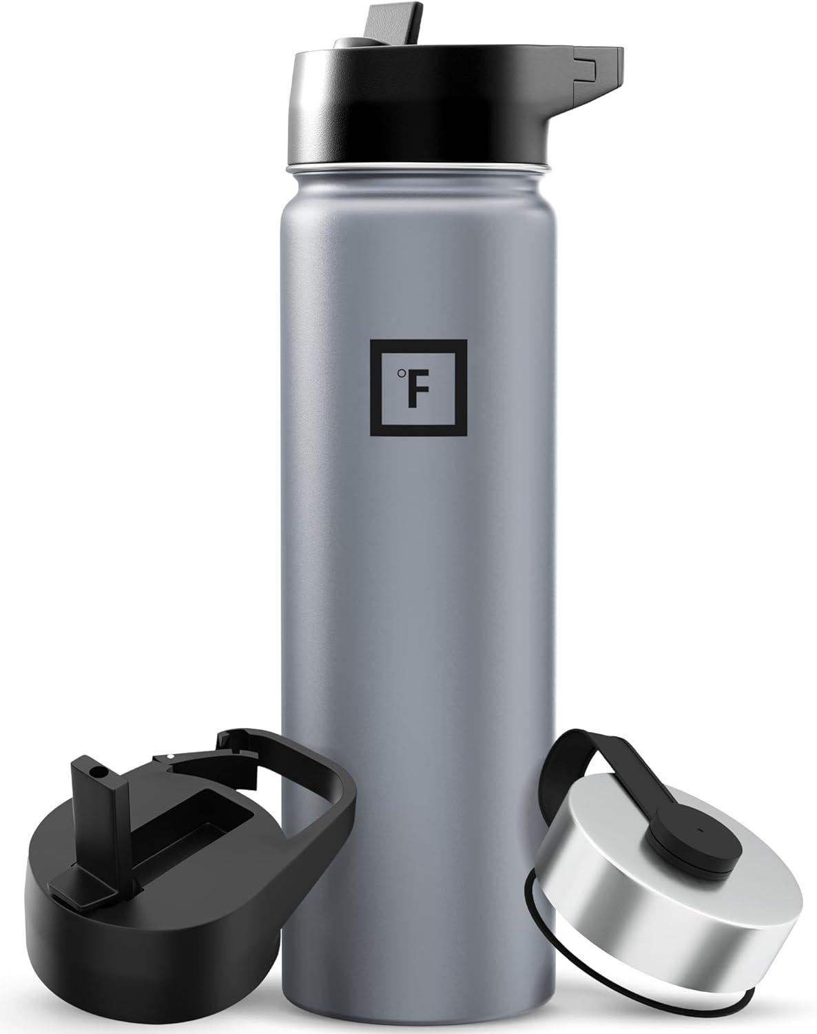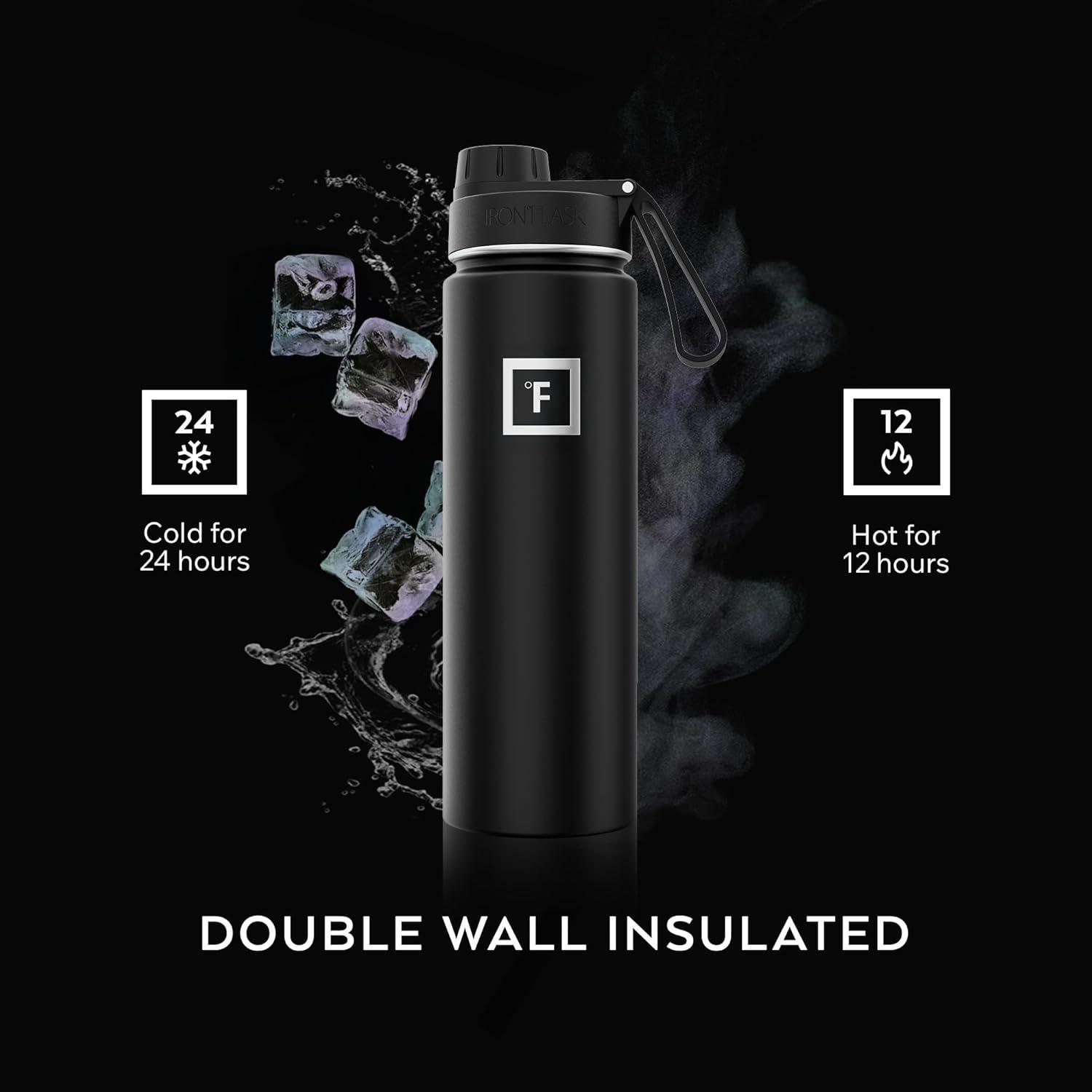 INSULATED SPORTS WATER BOTTLE: Goodbye sweat! The double wall insulation makes the Iron Flask sweat-free! It keeps your drink COLD for up to 24 hours, and HOT for up to 12 hours. *NOTE: ONLY the 14 Oz, 18 Oz, & 22 Oz fit in cupholders*