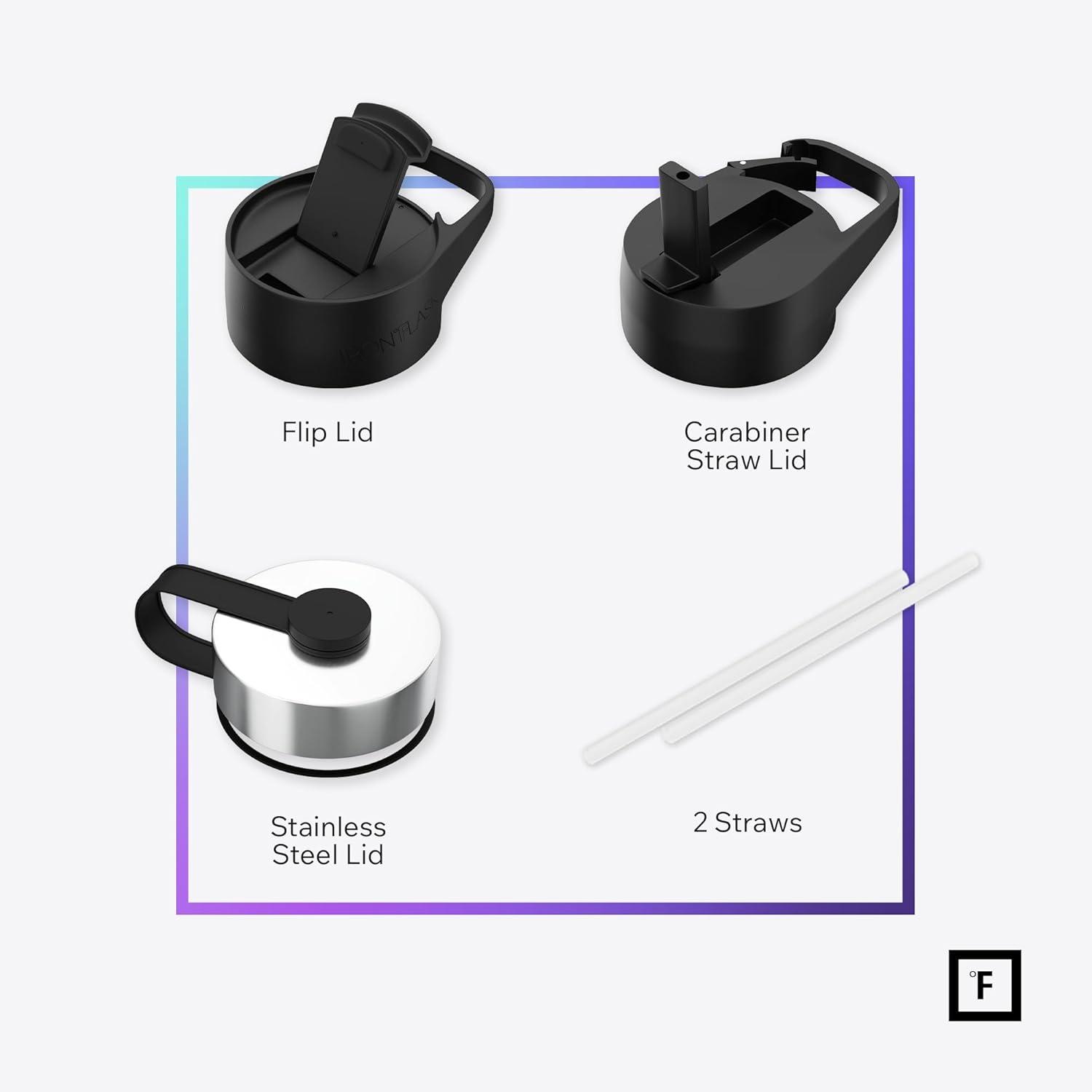 3 LIDS: YES, Iron Flask comes with THREE different LEAK PROOF lids. Carabiner Straw Lid with 2 Straws, Flip Lid, and a Stainless Steel Lid! *NOTE: The stainless steel lid is plastic from inside and stainless steel from outside*
