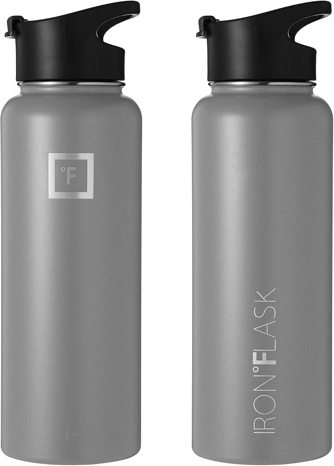 IRON °FLASK Camping & Hiking Hydration Flask with Straw, Wide Mouth Insulated Stainless Steel Sports Water Bottle – 32 oz Cotton Candy(Graphite)