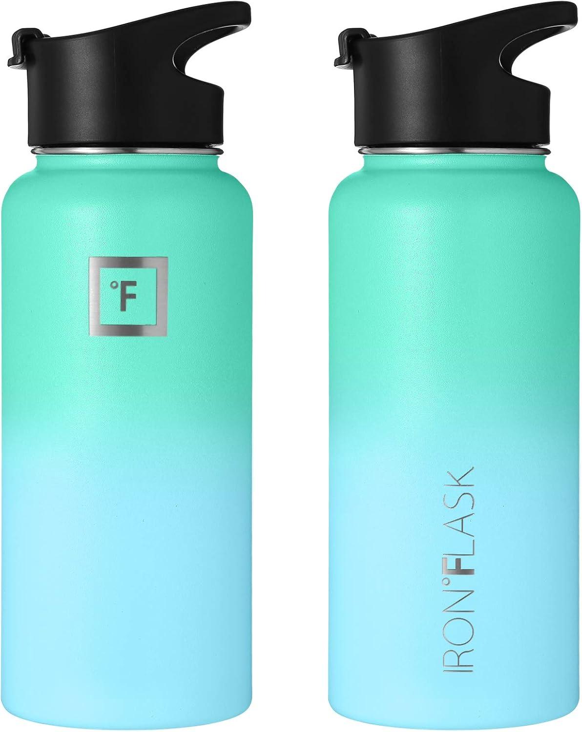 IRON °FLASK Camping & Hiking Hydration Flask with Straw, Wide Mouth Insulated Stainless Steel Sports Water Bottle – 32 oz Cotton Candy(Sky)