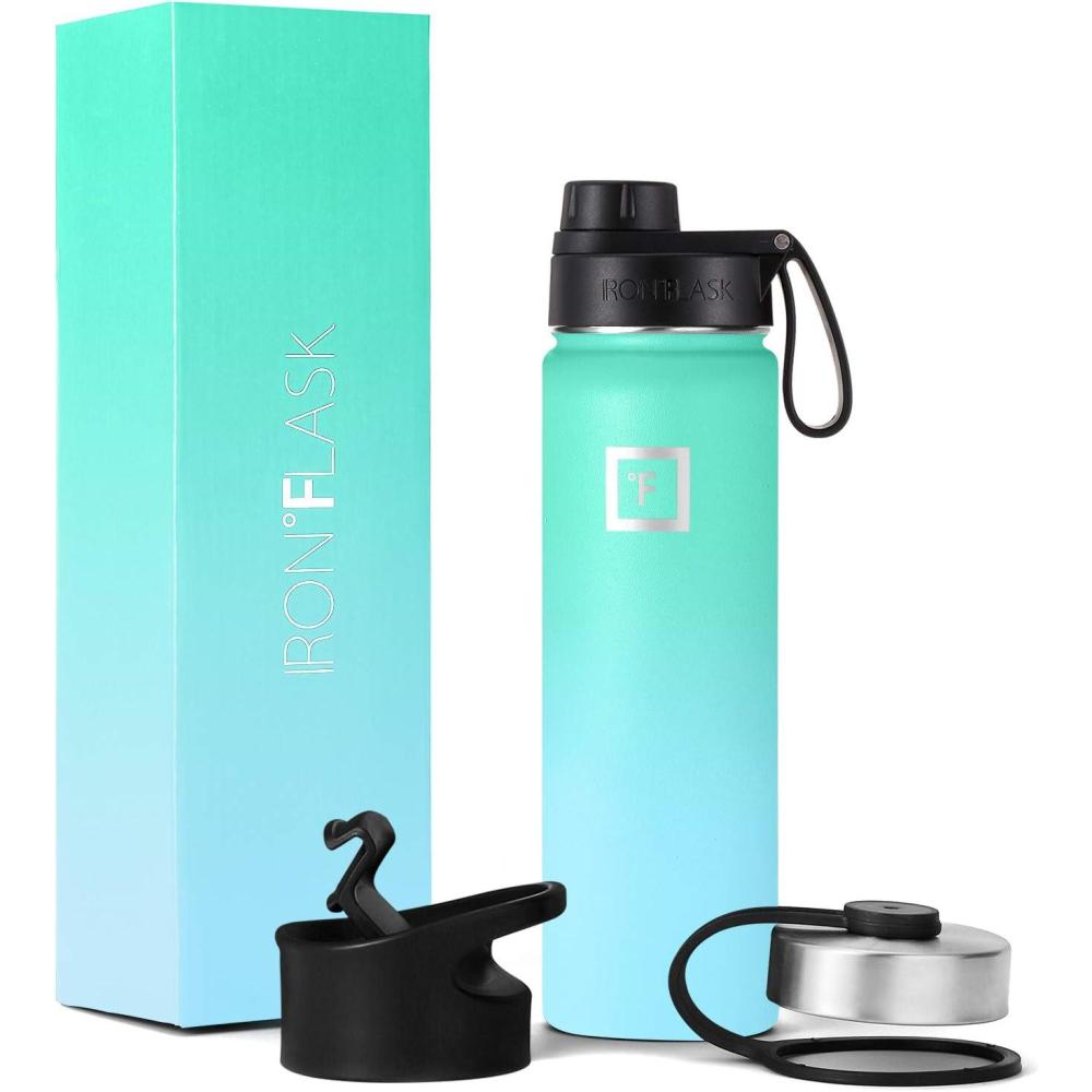 INSULATED SPORTS WATER BOTTLE: Goodbye sweat! The double wall insulation makes the Iron Flask sweat-free! It keeps your drink COLD for up to 24 hours, and HOT for up to 12 hours. *NOTE: ONLY the 14 Oz, 18 Oz, & 22 Oz fit in cupholders*