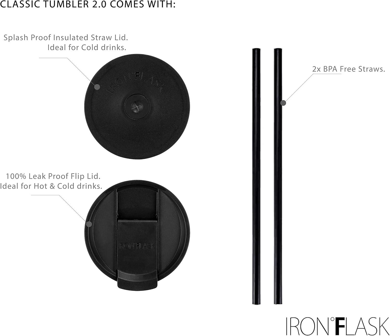 LEAKPROOF LIDS: Classic 2.0 tumblers come with TWO different insulated lids. A splash-proof straw lid with two straws, and a leak-proof flip lid. So you can enjoy every sip of your favorite drink without bathing in it.
