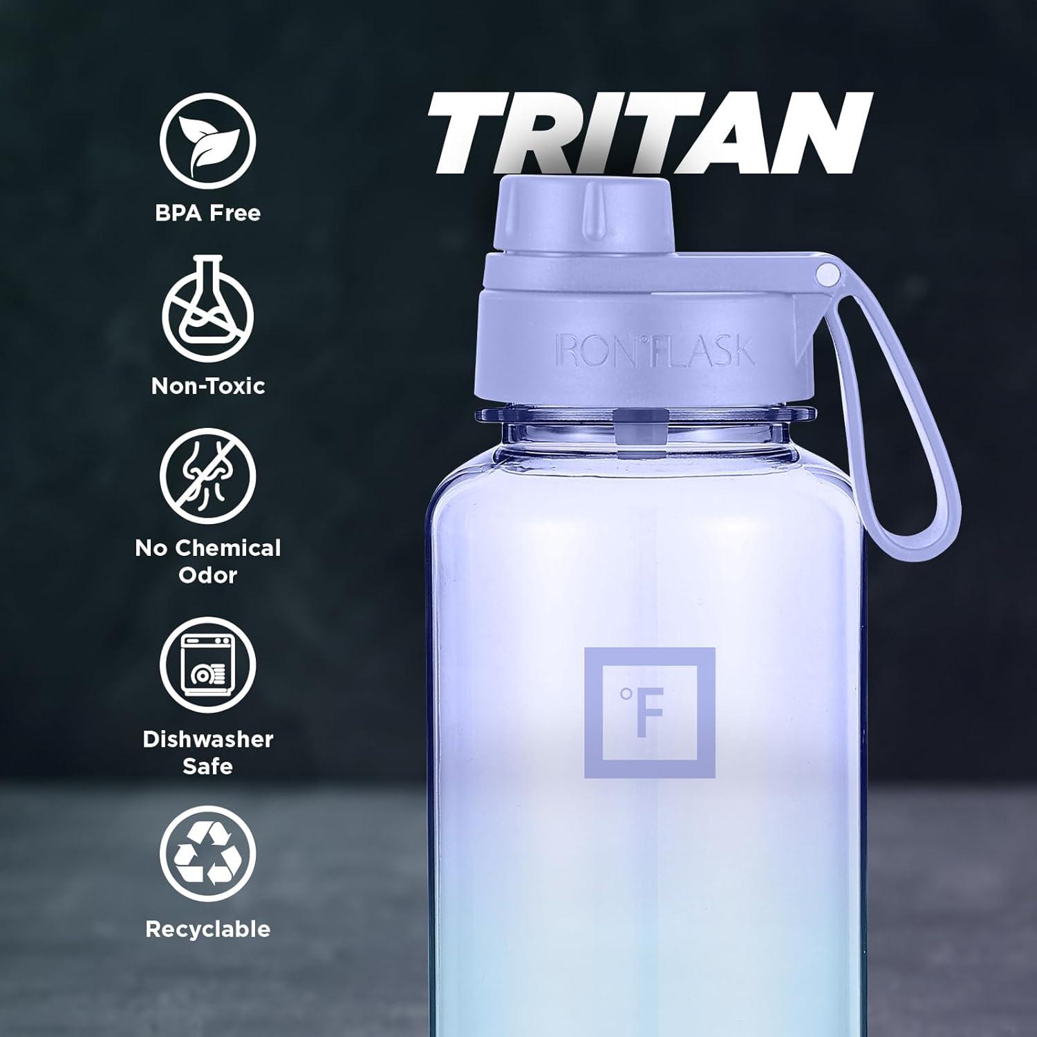 IRON °FLASK Clear Tritan Trekker Water Bottle with Chug Lid – Leak Proof & Lightweight for Gym, Hiking, Sports – Dishwasher Safe, BPA Free Plastic – Cotton Candy, 32 Oz