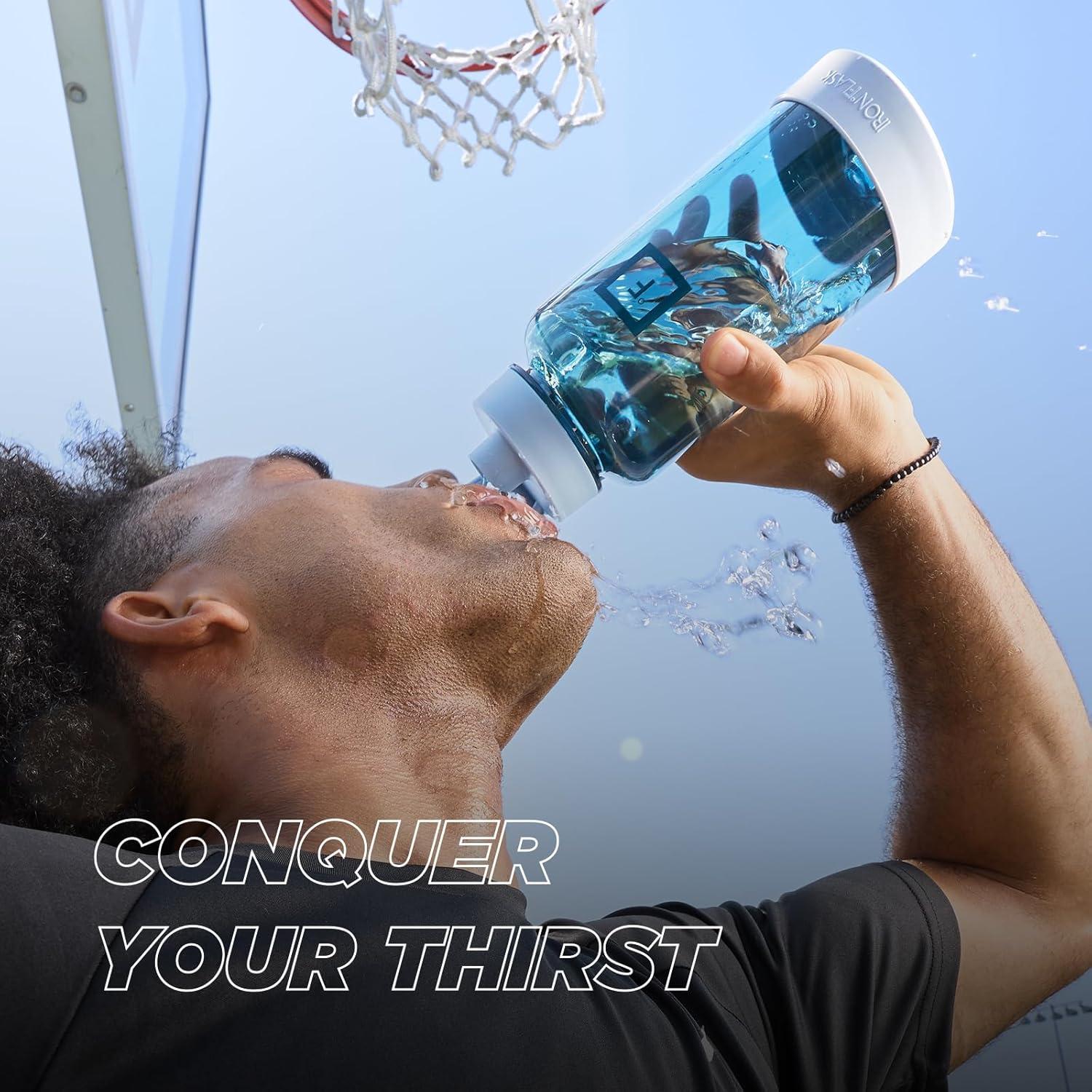 IRON °FLASK Clear Tritan Trekker Water Bottle with Chug Lid – Leak Proof & Lightweight for Gym, Hiking, Sports – Dishwasher Safe, BPA Free Plastic – Bubble Gum, 32 Oz(Black)