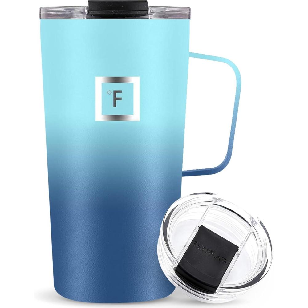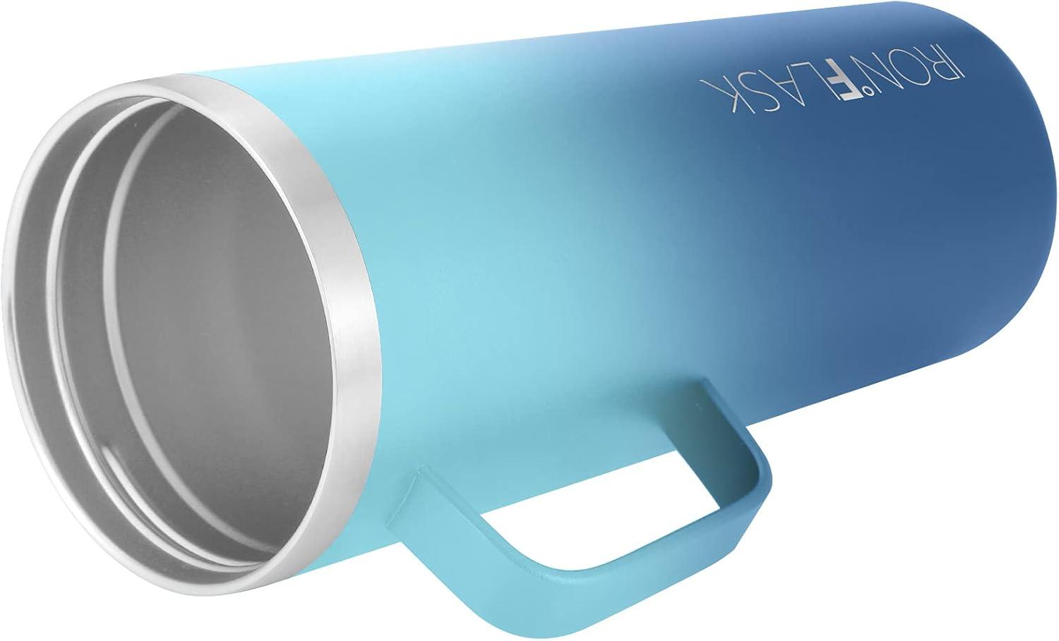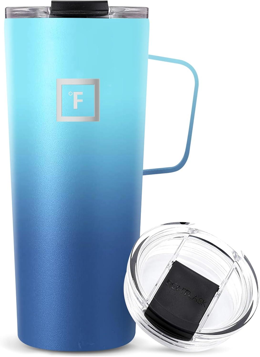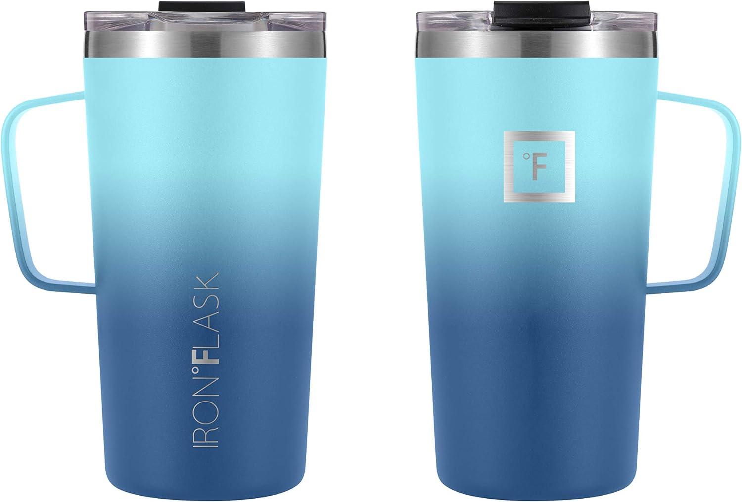 IRON °FLASK Grip Novelty Coffee Mug – Leak Proof, Vacuum Insulated Stainless Steel Bottle, Double Walled, Thermo Travel, Hot Cold, Water Metal Canteen – Pearl, 24 Oz – Classic Bottom(Blue Waves)