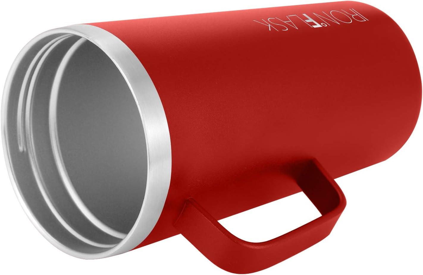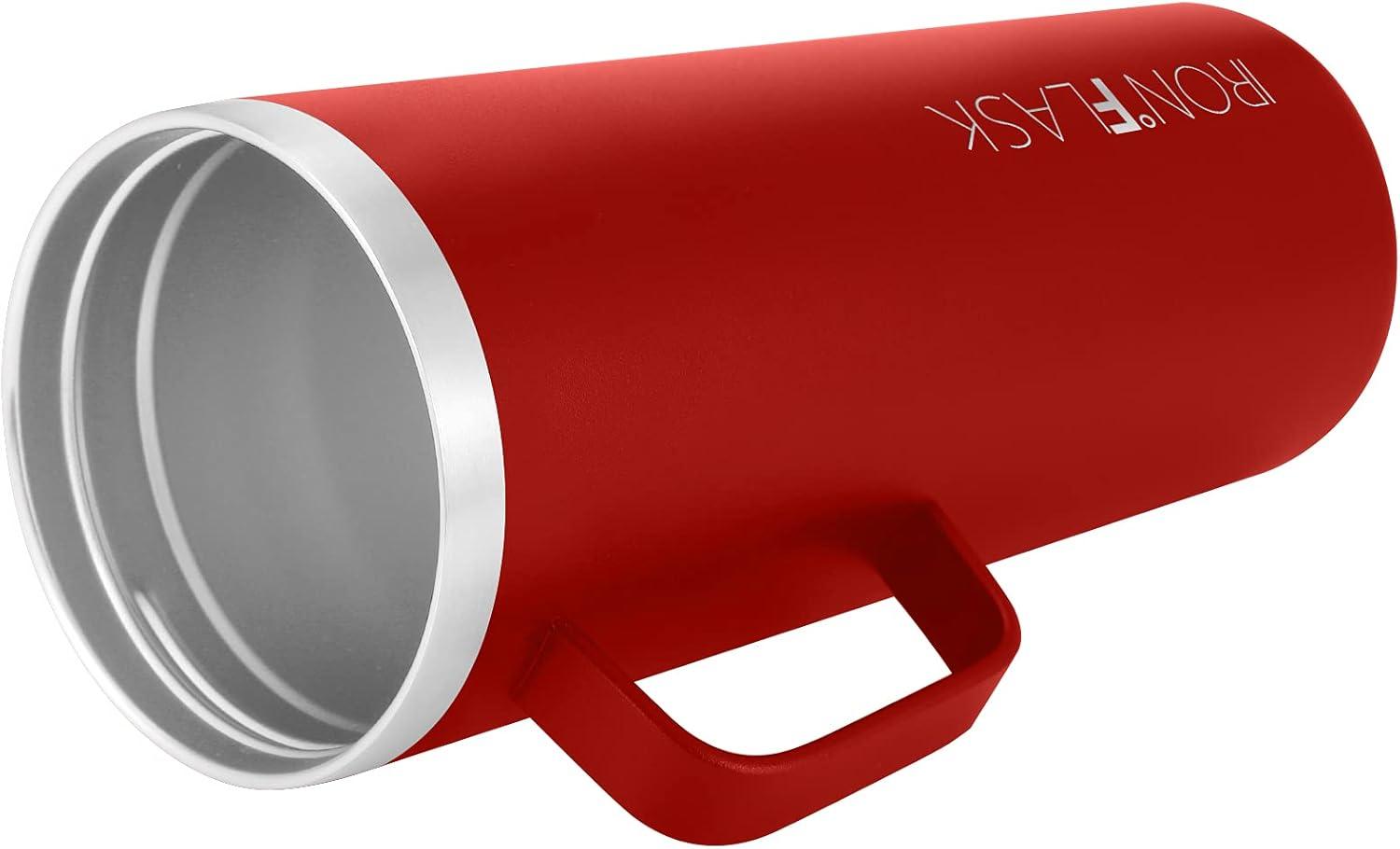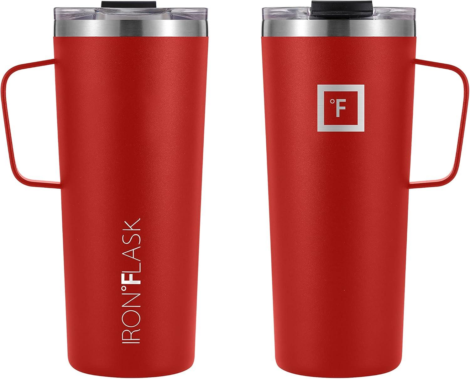 IRON °FLASK Grip Novelty Coffee Mug – Leak Proof, Vacuum Insulated Stainless Steel Bottle, Double Walled, Thermo Travel, Hot Cold, Water Metal Canteen – Pearl, 24 Oz – Classic Bottom(Fire Red)