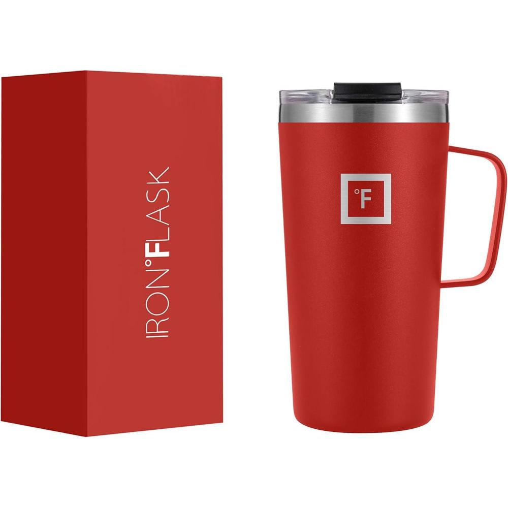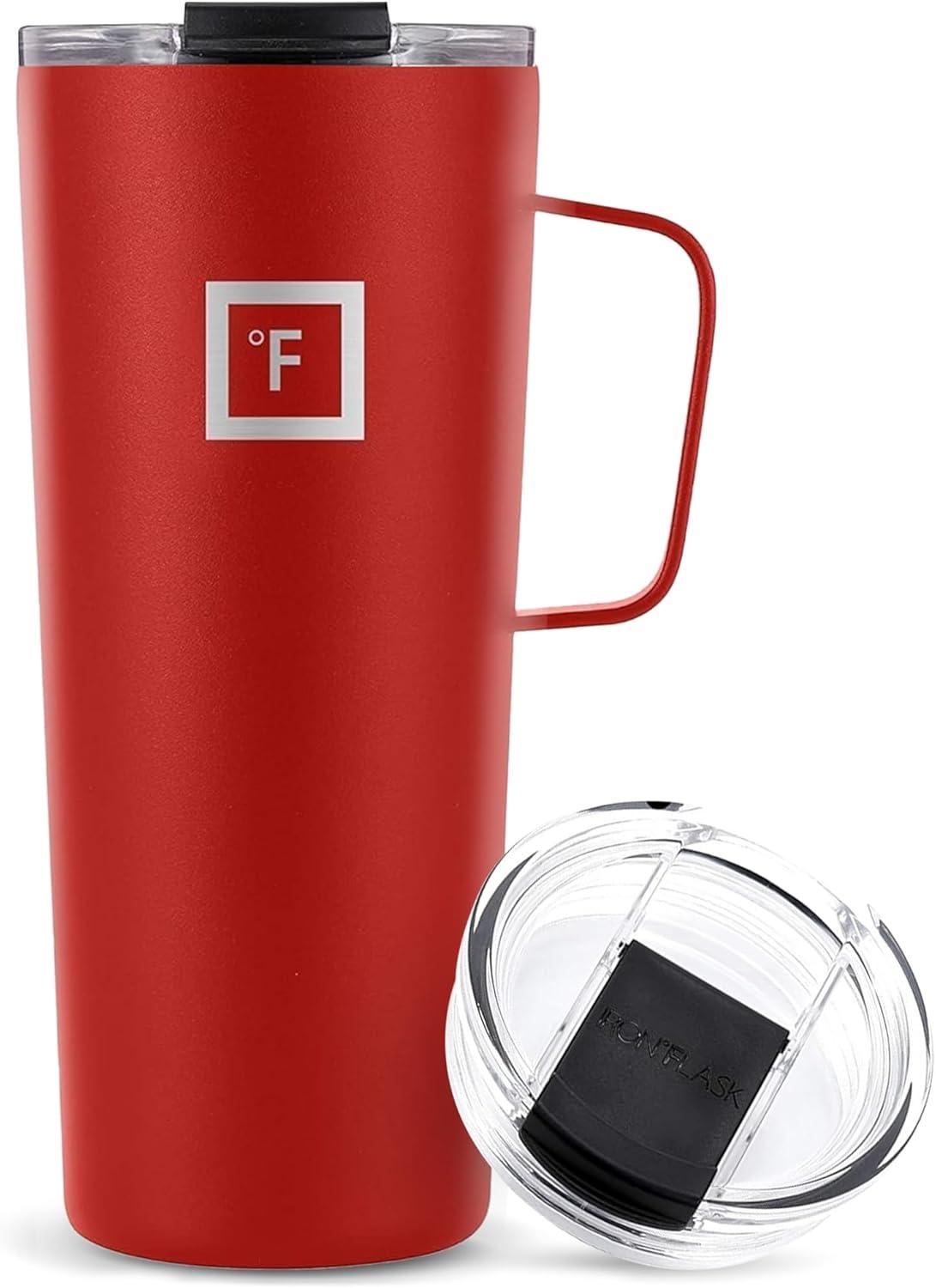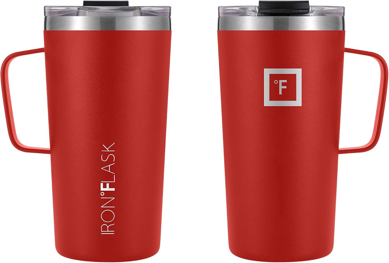 IRON °FLASK Grip Novelty Coffee Mug – Leak Proof, Vacuum Insulated Stainless Steel Bottle, Double Walled, Thermo Travel, Hot Cold, Water Metal Canteen – Pearl, 24 Oz – Classic Bottom(Fire Red)