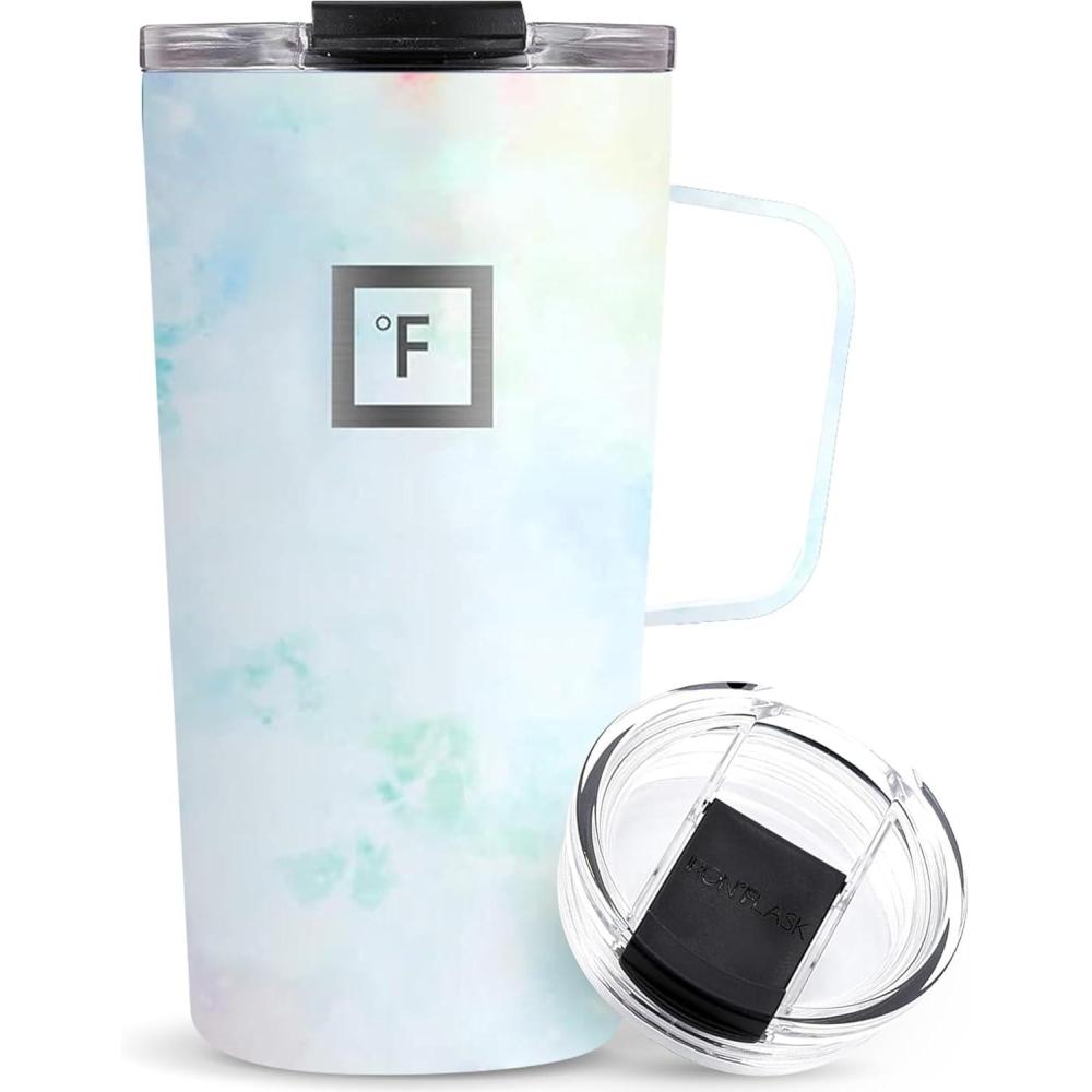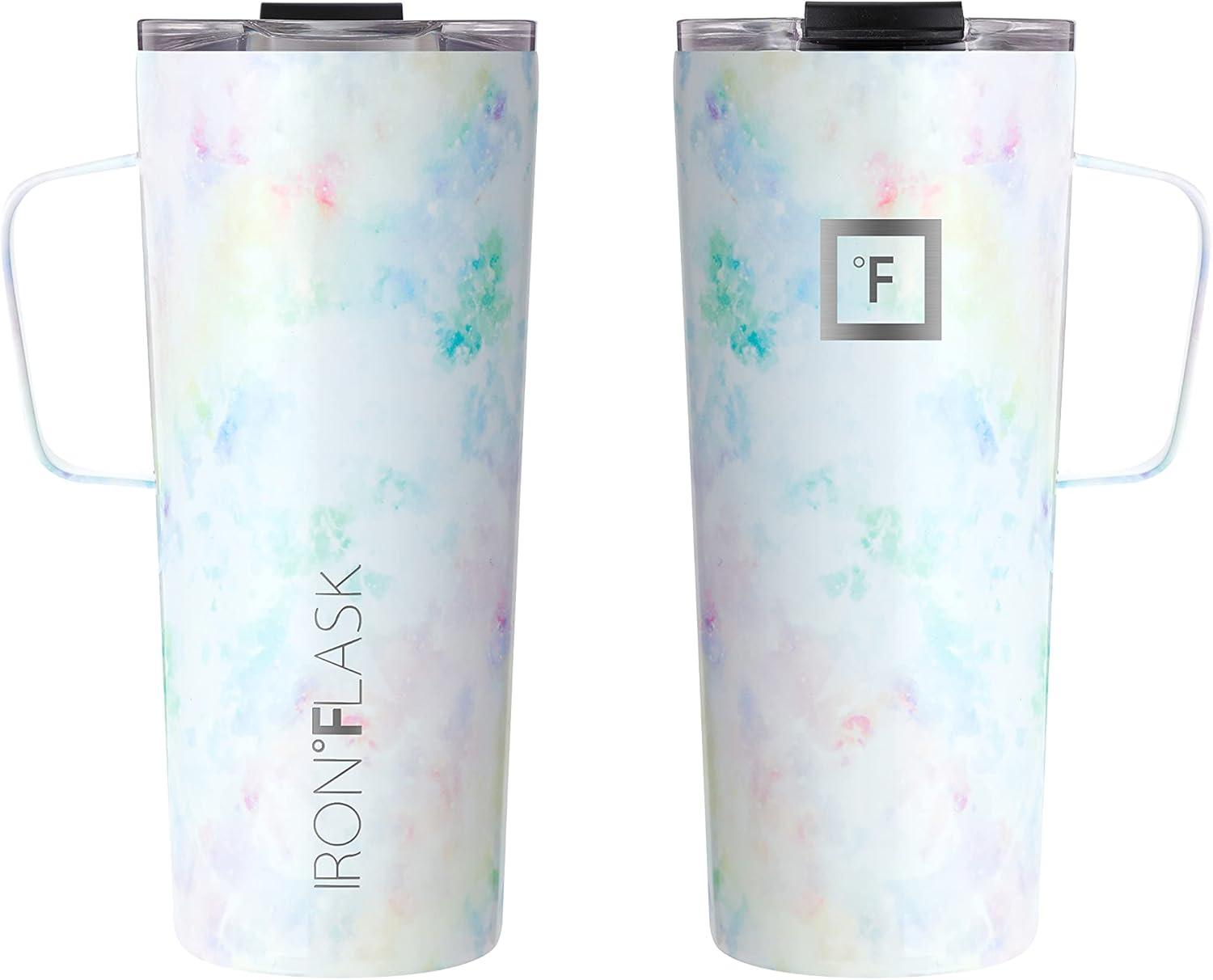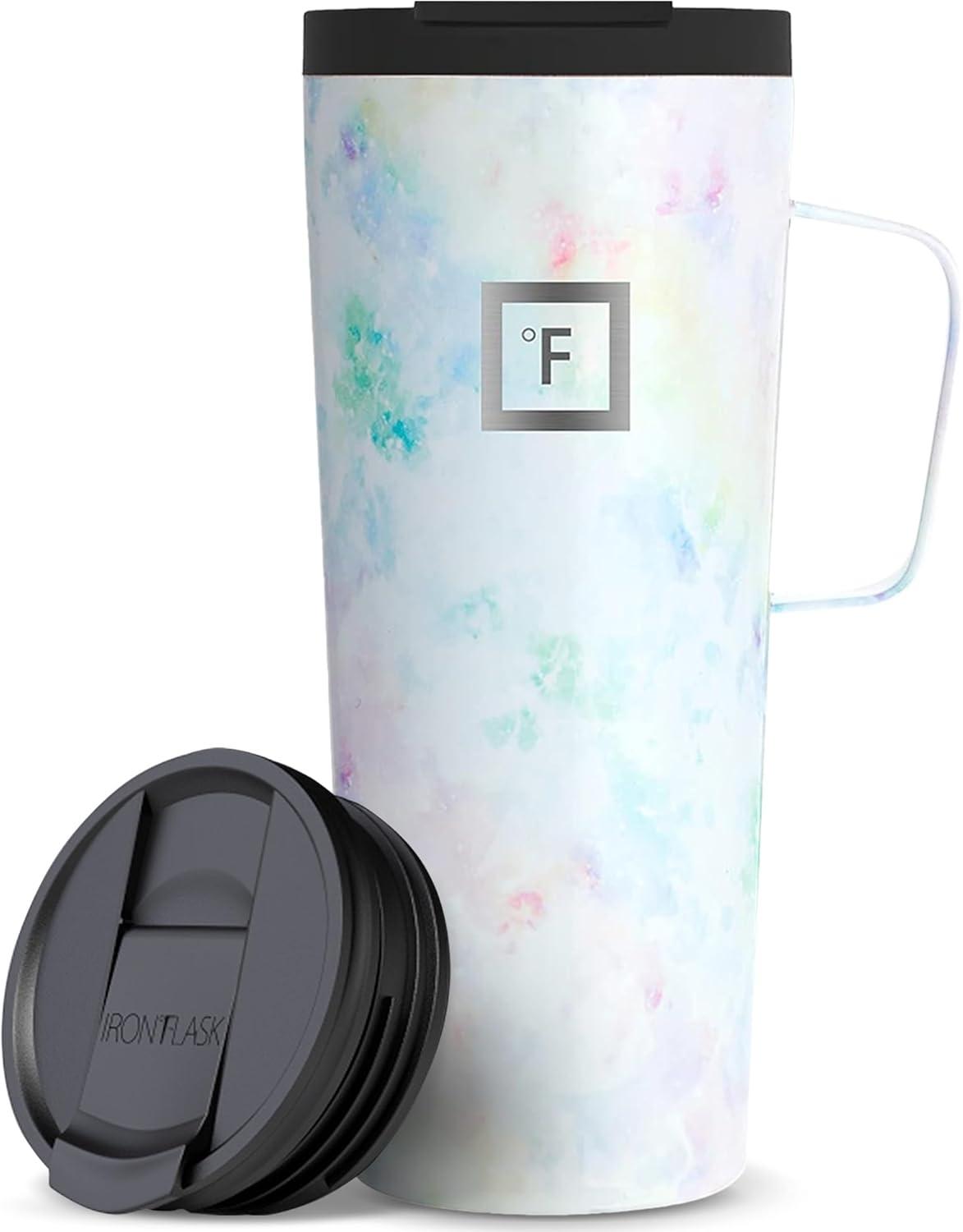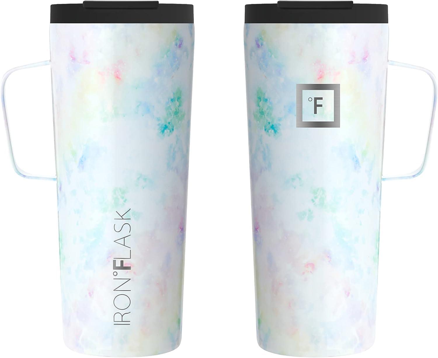 IRON °FLASK Grip Novelty Coffee Mug – Leak Proof, Vacuum Insulated Stainless Steel Bottle, Double Walled, Thermo Travel, Hot Cold, Water Metal Canteen – Pearl, 24 Oz – Classic Bottom(Terrazzo)
