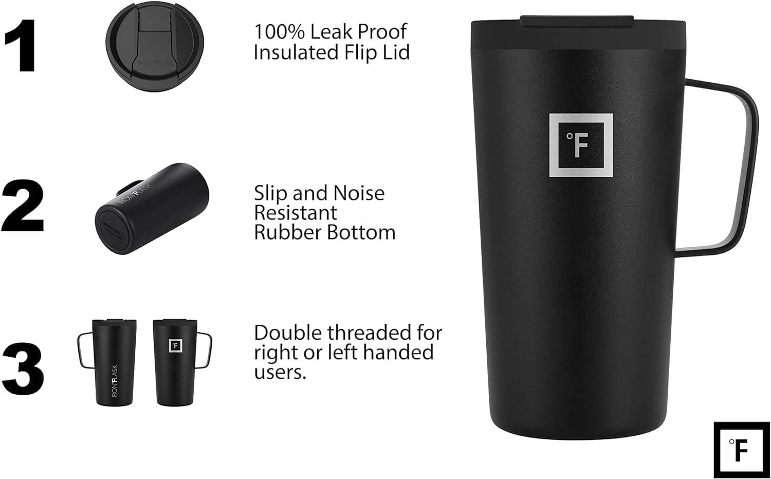 IRON °FLASK Grip Novelty Coffee Mug – Leak Proof, Vacuum Insulated Stainless Steel Bottle, Double Walled, Thermo Travel, Hot Cold, Water Metal Canteen – Pearl, 24 Oz – Classic Bottom(Pearl)